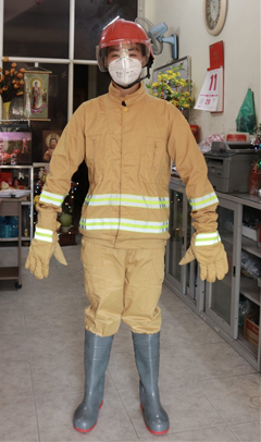 A. Mẫu áo chữa cháy, quần chữa cháy, nón chữa cháy, ủng chống cháy, khẩu trang phòng độc theo đúng qui định của thông tư 48: